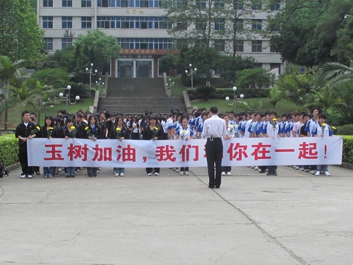 大地无情,人间有爱,玉树加油,我们和你在一起!我们深信,有党中央国务院的坚强领导,有全国人民的大力支援,灾区干部群众自强不息、艰苦奋斗,一个崭新美好的新玉树一定会屹立在青藏高原!