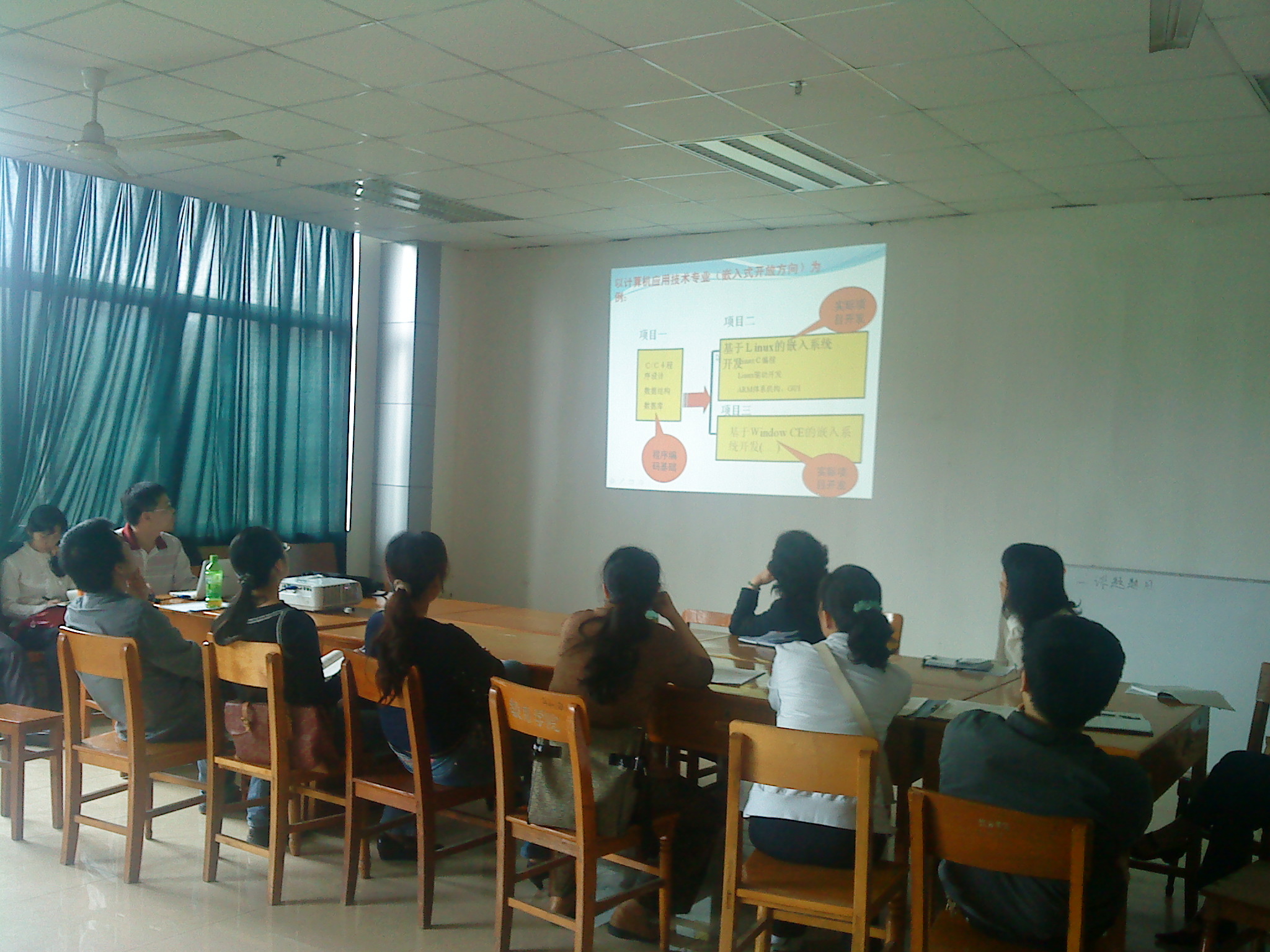2010年5月14日下午,信息工程系在系教研室举行德国职业教育教学法培训成果汇报会,会议由信息工程系韦小波主任主持,黄力老师作学习成果交流汇报,全系40多位教师参加了本次交流汇报会。