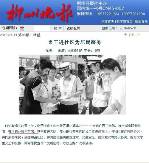 柳州晚报报道了该系义工活动