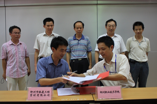 2010年7月7日下午,在学院博闻楼110教室,我院与企业举行专利技术转让签字仪式。柳州市自然科学优秀论文评审专家委员会主任、荣久专利商标事务所顾问李志华研究员、专利设计者彭学老师和我院副院长熊文华、科技开发处处长谭界忠、部分系部教师参加签字仪式。