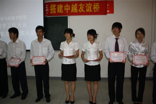2010年7月9日下午,汽车与环境工程系于招生就业处一楼会议厅召开了教学工作暨2010年职业技能竞赛表彰大会。学院林若森副院长、教务与实训管理处副处长何志忠及该系领导、全系教师和技能竞赛获奖学生参加了此次会议。