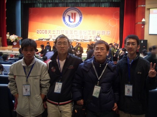 教师林建国(右二)带领学生参加全国石油化工职业院校学生化学检验工技能大赛并获奖