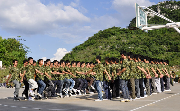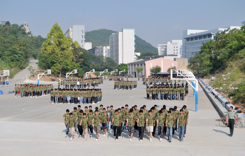 我院2010级新生军训已进行了一个多星期,学院领导及各部门、各系领导非常重视学生综合素质的培养,关心新生军训工作。2010年9月20日,烈日当空,学院全体新生继续坚持在校园各训练场进行紧张有序的训练。学院党委书记朱伟才、副书记阳旭、院长助理李彰汉在学院武装部部长莫帮雄、副部长钟旭、学生工作处处长梁毅等同志陪同下来到各系训练现场视察新生军训情况,慰问军训团全体官兵,对他们表达了亲切的问候。