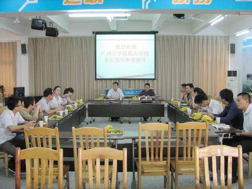 2010年10月18日上午,广西工学院鹿山学院副院长潘旭阳率领招生就业部、学工部及团委等9人来我院招生就业处参观交流。我院院长助理敬志轩、招生就业处副处长黄莉、就业办公室主任张斌、副主任许明及王凤岐老师等与来宾举行了座谈。座谈会由黄莉副处长主持。