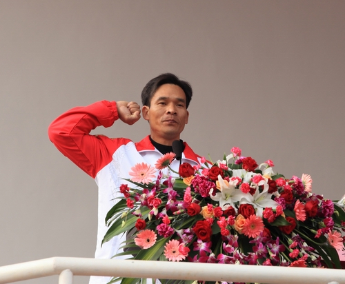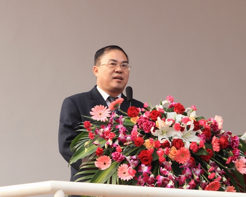 9点整,庄严的升国旗仪式后,学院院长石令明致开幕辞。他首先对本次运动会的隆重开幕表示热烈的祝贺,对本次运动会的策划组、体育组的筹备人员以及付出辛勤劳动的全体教职工人员表示感谢。他说,学院运动会的举办是我院师生弘扬中华体育精神,培养全面发展的高素质人才的重要举措。他希望通过田径运动会,锻炼学生的体魄,增强学生各方面的综合素质;希望全体教职工能够在此次运动会中发挥全员参与的体育精神,为学生起到一个模范,使自己的健康得到锻炼;希望运动员在比赛中团结合作,顽强拼搏,充分展示“更快、更高、更强”的体育精神;希望裁判组人员在此次比赛中做到严肃、认真、公平、公正,最后,石令明院长祝贺本次运动会取得圆满成功。