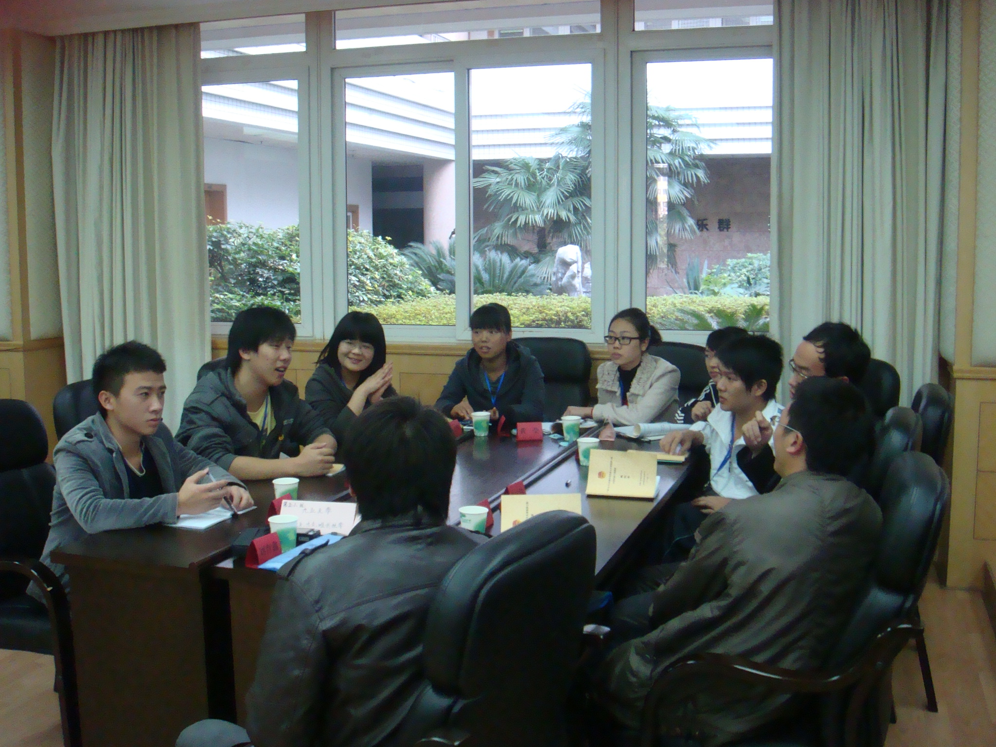 黄杰同学(左二)担任培训班小组长并在小组讨论中发言