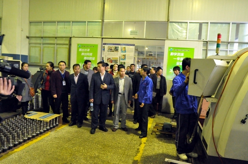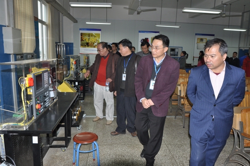 企业嘉宾在学院领导陪同下参观机电实训基地