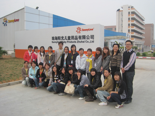 艺术设计系2008级辅导员覃静及19名服装专业的同学经过12个小时的长途跋涉于凌晨三点到达目的的——珠海阳光儿童用品有限公司,并得到了公司的热情接待。21日,公司相关负责人带领同学们参观了展览室、车间并介绍了公司的企业文化及运作过程。之后同学们进行了为期三天的培训。