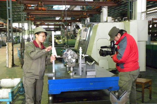 摄制组拍摄在福达集团就业的我院毕业生在工作岗位上的场景