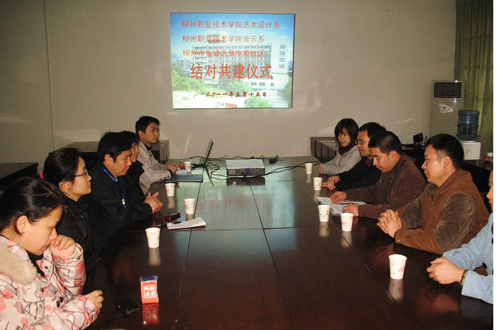 2011年3月15日下午,艺术校区1号教学楼203会议室洋溢着暖暖的春意。继与城站社区、阳光社区结对共建之后,艺术设计系党总支、音乐系党总支、艺术设计系团委、音乐系团委与柳州市鱼峰区景中苑社区签订“区校共建”协议,为大力培养入党积极分子和开展第二课堂学生综合素质训练创造了新的平台。