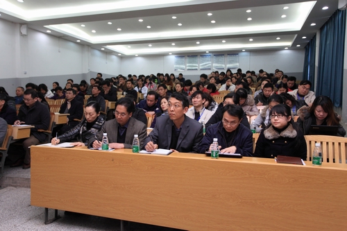 2011年3月25日下午,我院召开党的十七届五中全会精神宣讲会,会议邀请了中共柳州市委副书记、市委党校校长苏海棠作题为《加快柳州工业化城镇化步伐》的报告,我院党委书记朱伟才主持宣讲会。党委副书记阳旭,副院长杨毅、张翔、林若森,院长助理李彰汉、敬志轩,全体中层干部、科级干部、后备干部、教学团队负责人参加宣讲会。