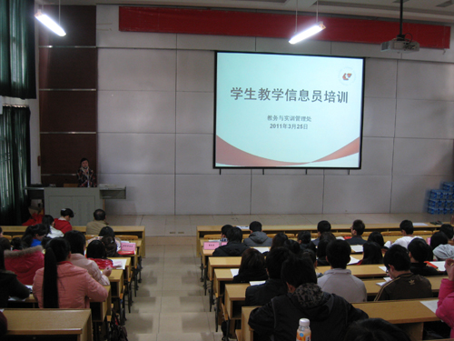 为了进一步健全我院教学质量监控体系,促进教学质量的提高,加强对教学信息工作的管理和教学信息反馈,鼓励和吸收学生参与教学管理,2011年3月25日下午,我院举行了2009-2010学年度优秀学生信息员表彰大会暨2010级学生教学信息员培训会。参加会议的有张翔副院长、学院督导员、各系部教学质量监控小组秘书、学生专干,2009-2010学年度优秀学生教学信息员、2010级学生教学信息员以及教务与实训管理处相关老师近一百五十人。会议由教务与实训管理处黄宁老师主持。