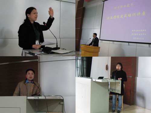 培训讲座由教务与实训管理处黎华老师主持。培训内容主要分三部分,第一是由教务处刘柳老师介绍精品课程建设工作,她从精品课程建设的原因、要求、主要工作三方面进行了说明;第二是由鞠红霞处长对2010年度国家高职高专精品课程评审指标进行解读,她结合四门国家级和区级精品课程的申报材料对评审指标的15个二级指标进行了具体生动的解读;第三是由现代教育技术中心曾韬老师对精品课程网站建设的相关技术问题进行说明,包括素材的处理、精品课程制作工作的介绍和精品课程建设中存在的问题。