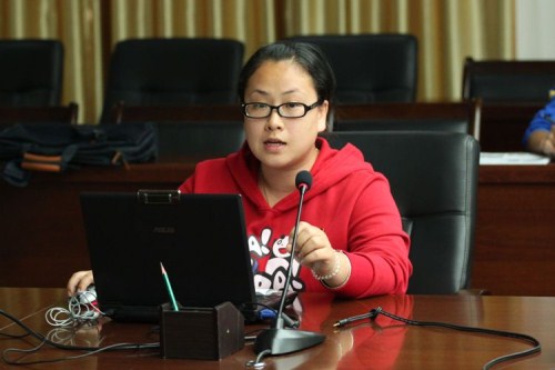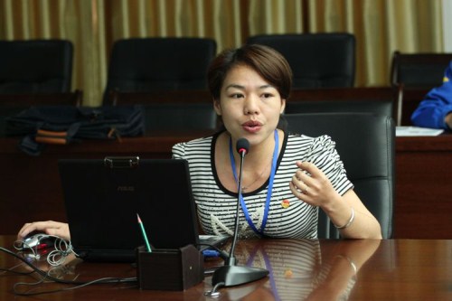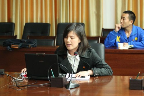机电工程系分团委书记覃日娜在作工作汇报