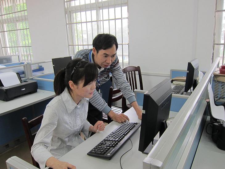 莫徽忠副教授和阳明霞老师在共同探讨学术问题