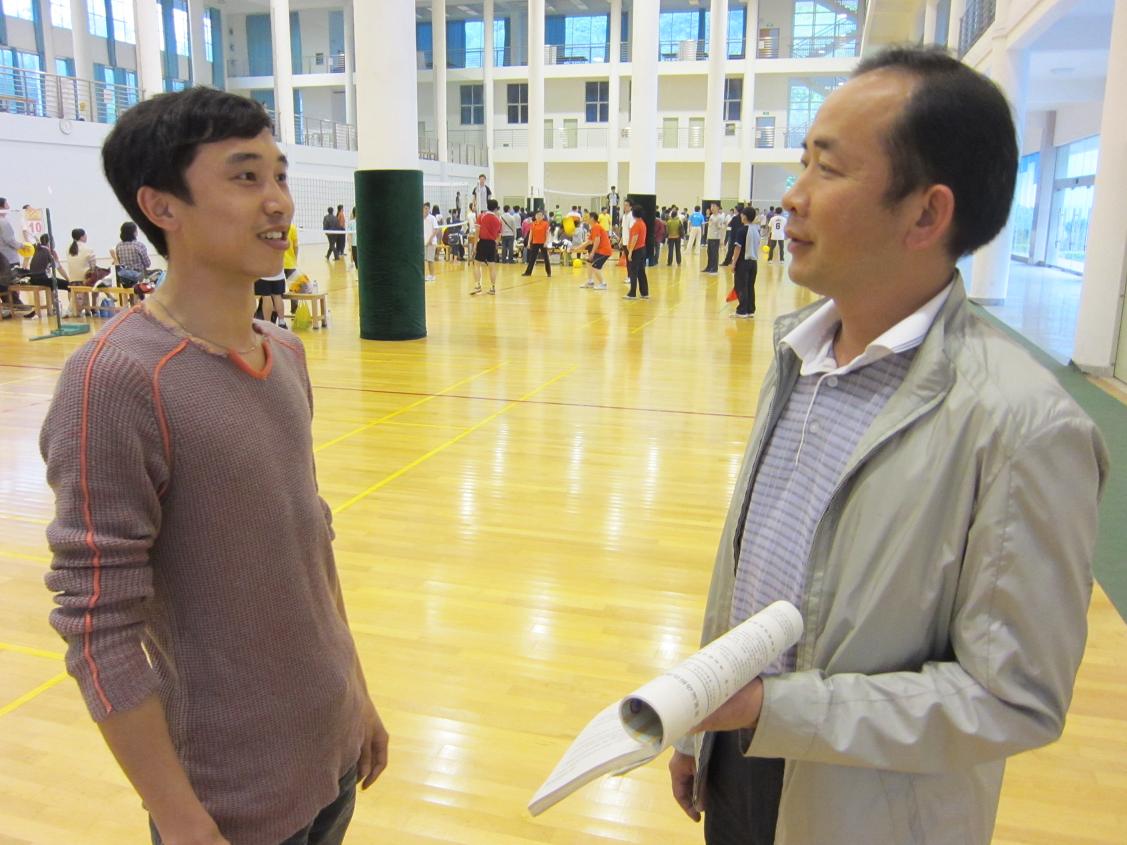 李革副教授和杨友洪老师在运动场讨论训练安排