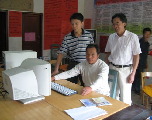 我院赠送电脑并教村干部如何使用