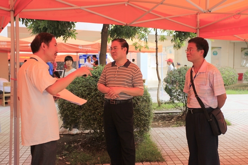学院领导朱伟才、石令明、阳旭、杨毅、张翔以及各职能部门负责人到新生收费处、绿色通道、招生就业处、各系部新生接待站、学院食堂等视察了迎新各项工作,询问新生报到的基本情况。朱书记、石院长对大家的工作给予了充分肯定,向大家表示亲切慰问。朱书记、石院长指出,新生入校的第一站就是迎新接待站,是大学生感受大学生活的第一课,要求大家用热情、细致、周到的服务,给所有新生留下美好的记忆。他们对实行“一费制窗口”简化新生缴费程序、安排专业负责人在现场为新生答疑解惑等迎新措施值得肯定。朱书记、石院长强调,各部门、系部要把各项工作做实、做细,要把一些好的做法固定下来,形成一些制度加以贯彻落实,同时要认真总结经验,推陈出新,每年都要有一些新的迎新举措。