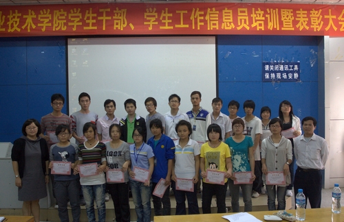 2011年11月18日,学院在思贤楼阶梯教室举行了学生干部、学生工作信息员培训暨表彰大会。学生工作处处长梁毅,学生工作处副处长、团委书记杨琳以及全院近两百名学生干部到场参加了此次大会,大会由杨琳书记主持。