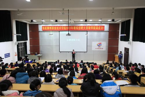 以“职来职往,体验职??;求职真经,非你莫属”为主题的柳州职业技术学院2011年大型职场互动节目“勇往‘职’前”(模拟招聘大赛)于2011年12月21日在博闻楼110教室拉开帷幕,学院副院长张翔,公共基础部、招生就业处、院团委领导参加此次活动。当晚柳州电视台《摆古》栏目也亲临现场采访报道。