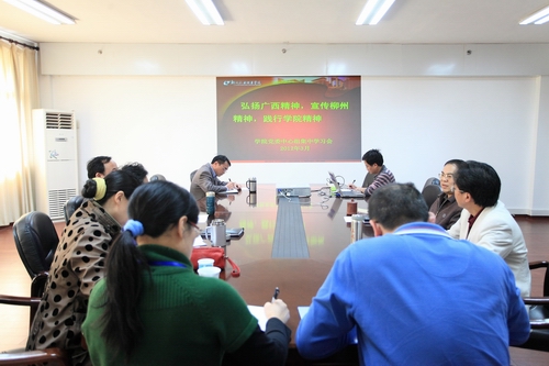 学院党委理论学习中心组召开“弘扬广西精神,宣传柳州精神,践行学院精神”专题学习会