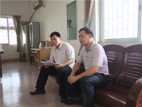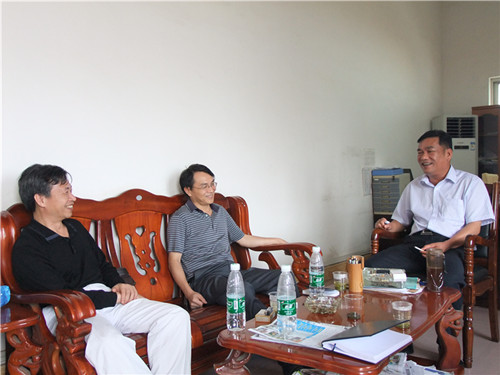 林若森副院长(中)、黎刚主任(左)与来宾市职业技术学校领导交流
