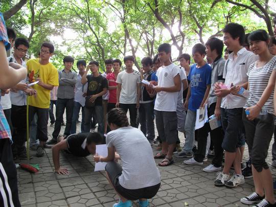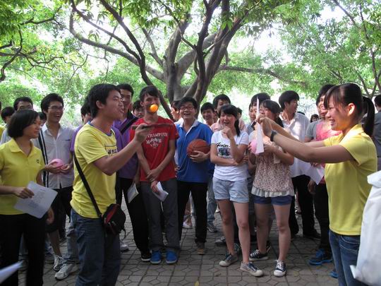 当天下午,学风建设大讨论之后,全体学员在德润楼旁的一片树林下,开展了以学风建设讨论小组为单位的团队素质拓展活动。活动共设置了“运动不NG、心有灵犀等趣味竞技游戏项目,活动项目围绕培养学生干部积极的人生观,以及通过团队讨论、凝聚共识、合理计划、互助合作来接受挑战并解决困难,从而达到统筹组织、自我管理、团体互助合作及与人相处等多方面锻炼的目的来设计。