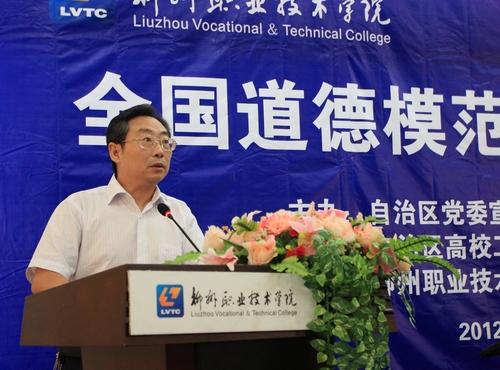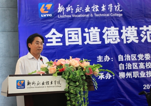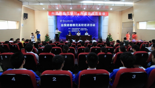 2012年6月6日上午,由自治区党委宣传部、自治区文明办、自治区高校工委、共青团广西区委主办的广西“全国道德模范高校巡讲活动”在我院行政楼100礼堂隆重举行,三名全国道德模范提名奖获得者邓红英、梁启波、袁茵亲临现场,用他们的先进事迹与感人经历为我院师生奉上了一场感人肺腑、震撼人心的精彩报告,让道德之花在我院盛开。