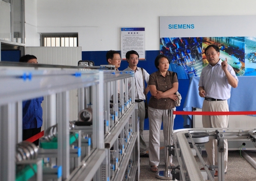 编制组一行在学院领导的陪同下参观我院机电实训基地