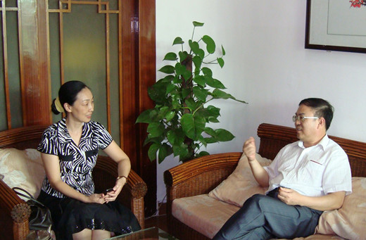 自治区高校工委秦敬德副书记(右一)与我院朱伟才书记(左一)、张翔同志(中)交流