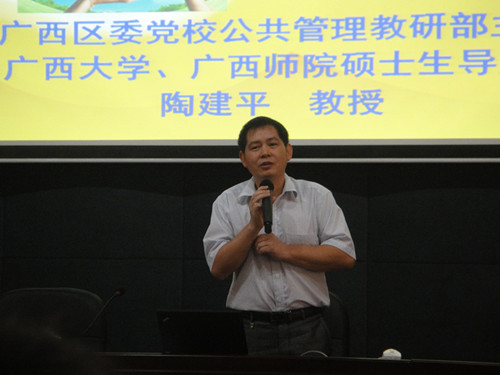 广西区党校公共管理教研室主任陶建平教授做“构建和谐共进团队的主体修炼”主题讲座