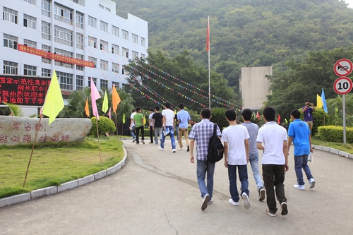 我院2012—2013学年上学期开学上课第一天,学生一早前往教室上课