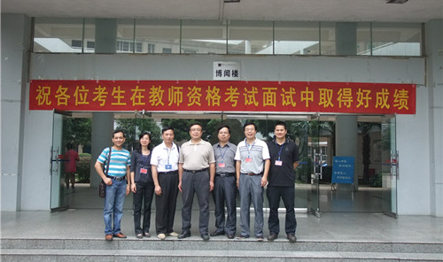 9月22日,全国中小学教师资格柳州考区面试考试在我院举行,共有145人参加本次了考试。市教育局殷茁雄书记在学院继续教育中心黎刚主任、卢荷副主任的陪同下视察了考试情况,并认真听取了专家委员会的工作情况汇报。殷茁雄书记对本次考试的组织管理工作给予高度评价,称赞本次考试组织严密、管理严格、秩序井然、考虑周全、服务到位。