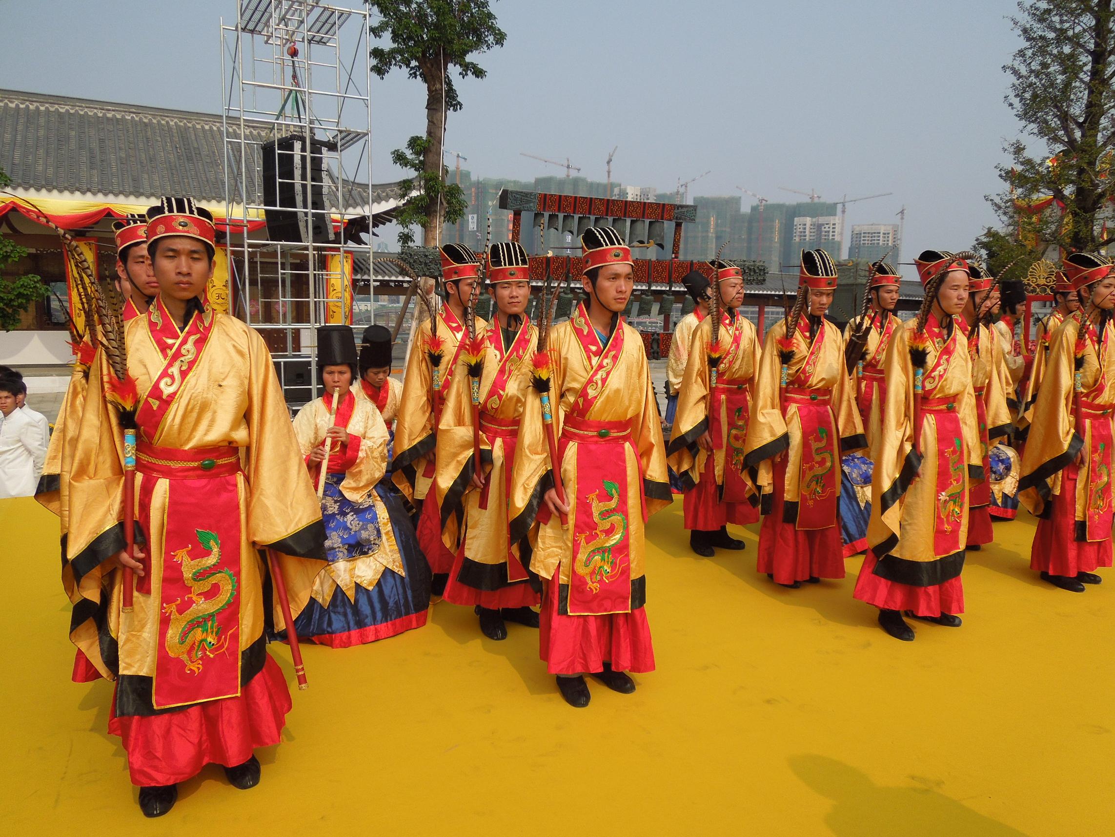 本次大典基调统一采用黄色——黄色舞台,黄色地毯,黄色旗、幡,黄色帷幔,整个祭孔活动显得隆重、祥和、典雅,更充满祭祀特点,给前来参祭的市民在视觉上带去了全新的冲击。今年参加活动的领导及各界人士总数达1000余人,来自我院的108名志愿者在大典中分别扮演了礼生、舞生、武士、壮汉、乐生、花篮礼仪等角色。