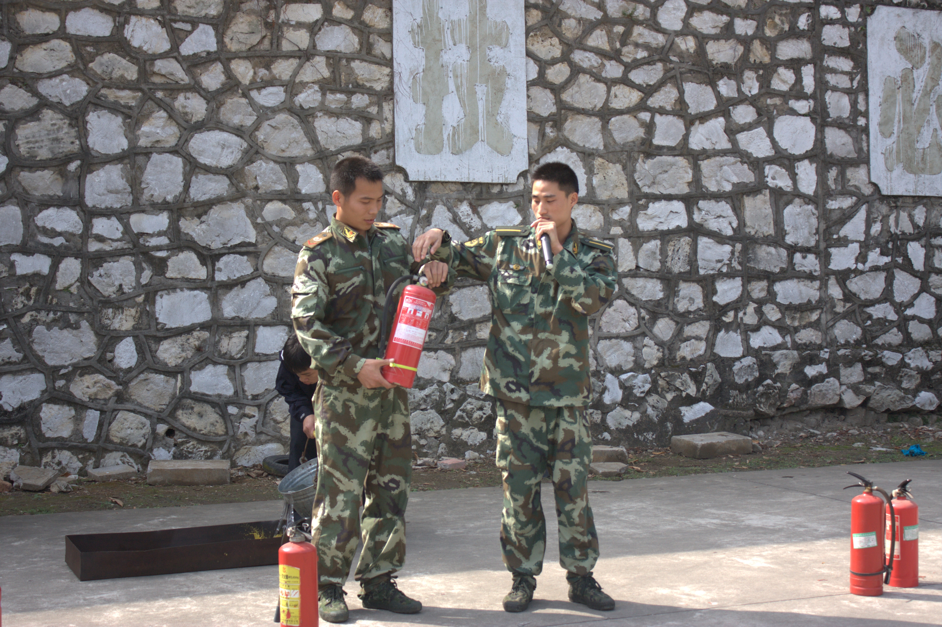消防队员在讲解怎样使用灭火器