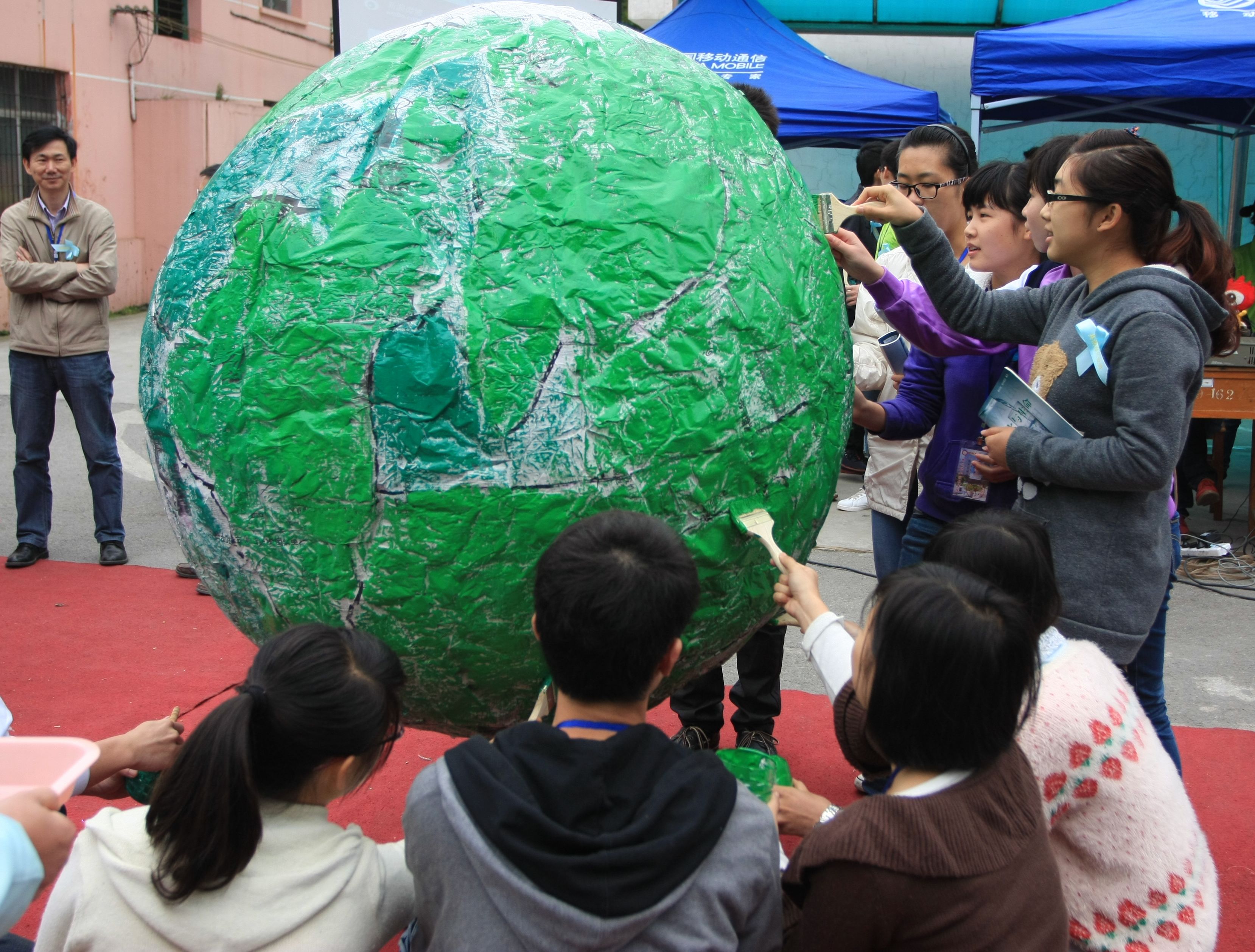 学生代表绘制绿色地球