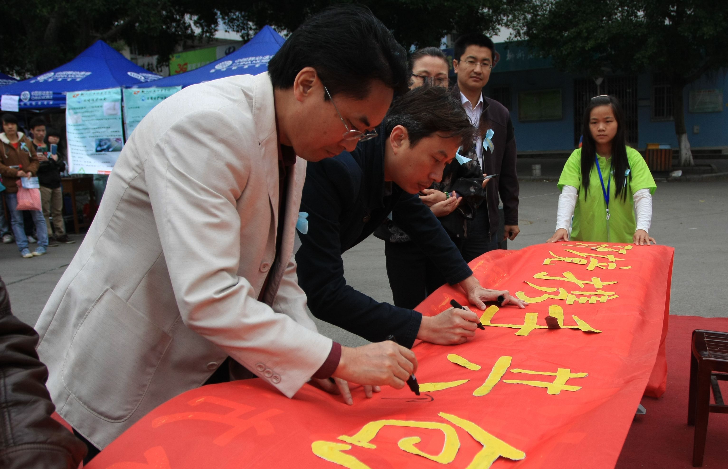 环保局龚继冬副局长及阳旭副书记在主题横幅上签名
