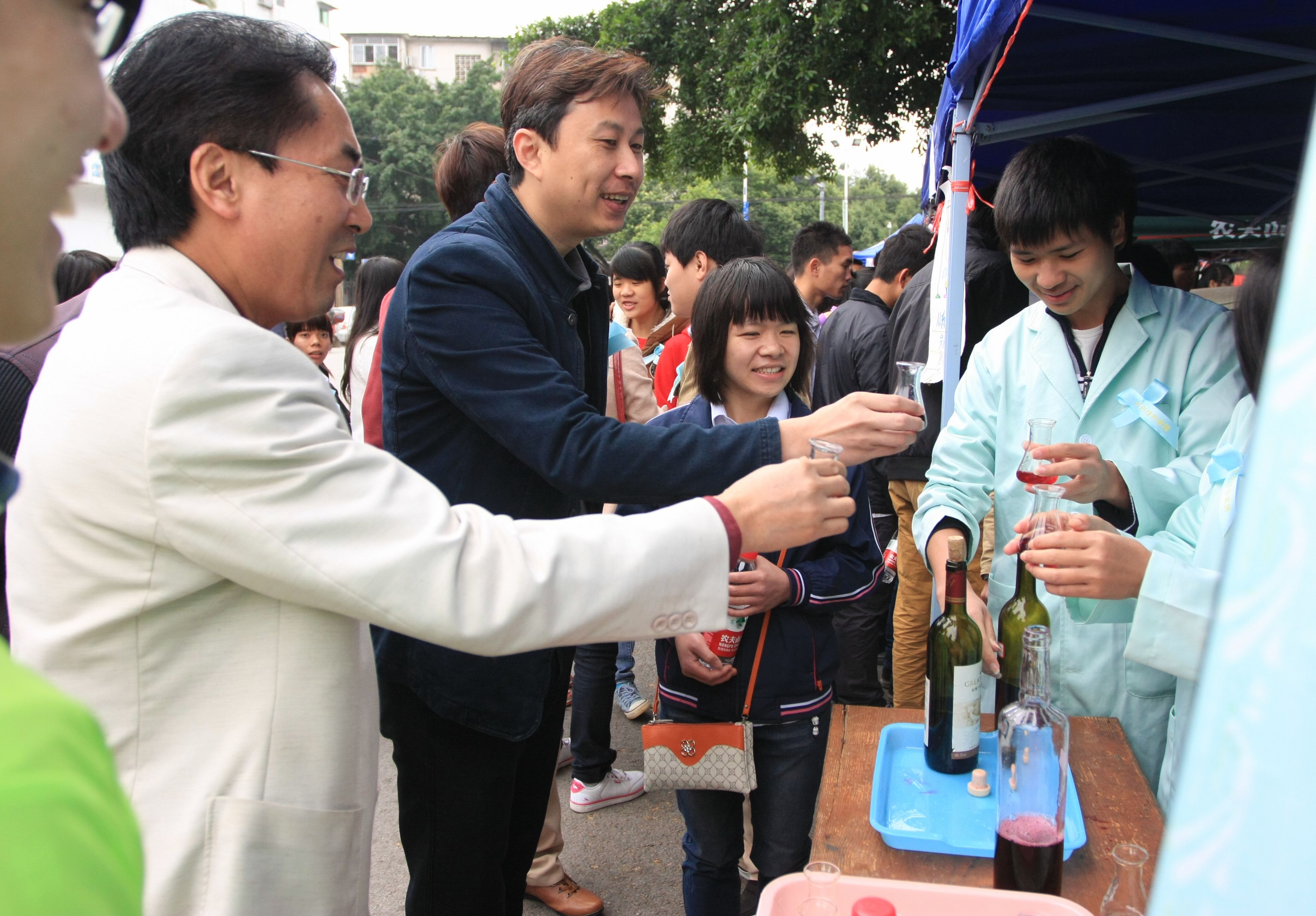 开幕式后,阳旭副书记与到场嘉宾一同参观指导游园活动的开展。此次活动内容丰富,精心布置了一系列生动有趣又引人深思的活动环节,有水的酸碱度检测、牛奶新鲜度快速检测、葡萄酒酿制工艺、绿植领养、校园环境随手拍、环保商店、海报环保、“蓝丝带“行动、有奖知识问答、环保游戏以及现场微博互动等环节。