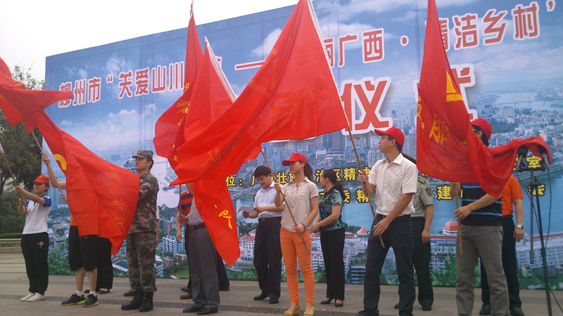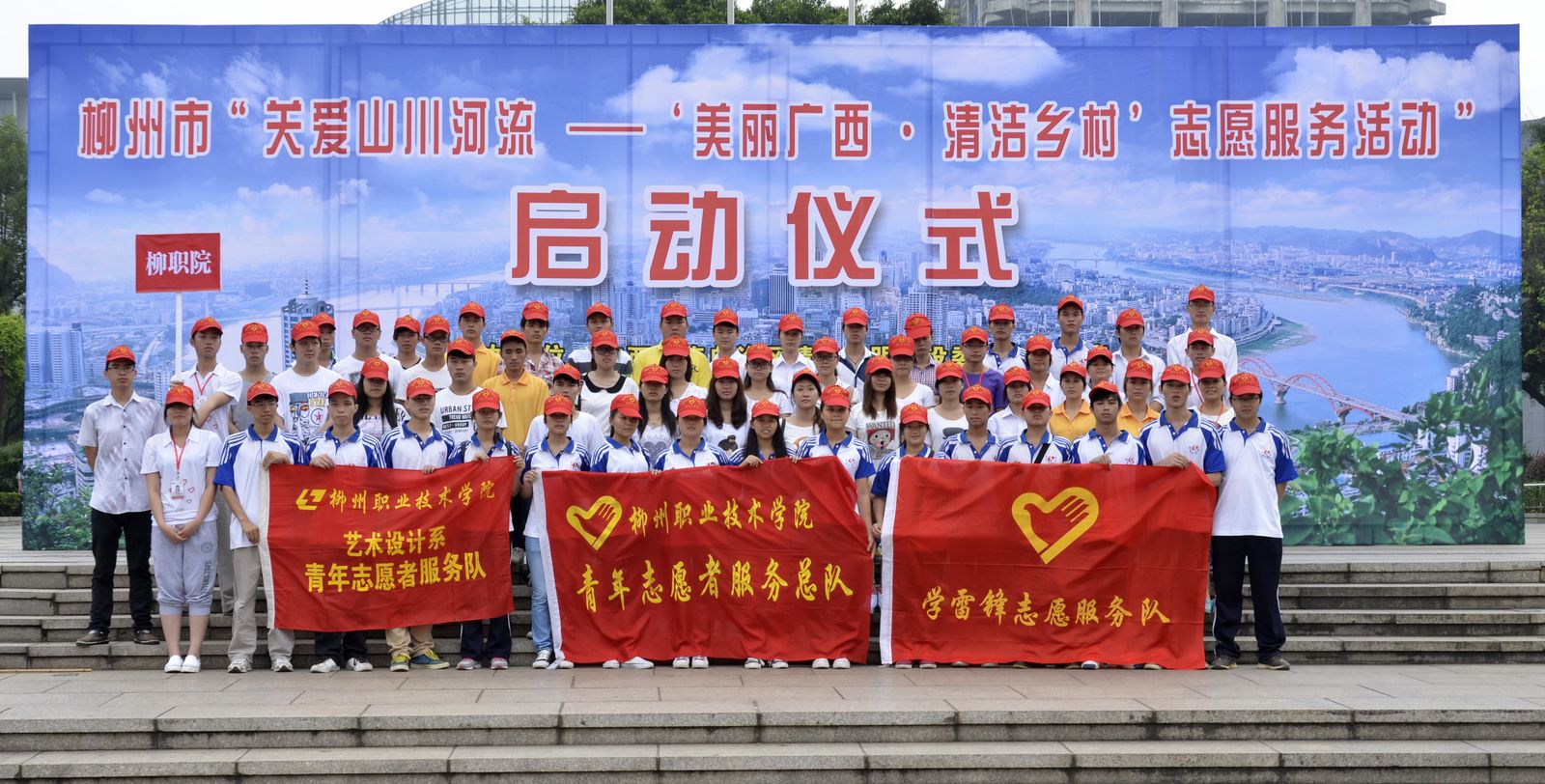 为响应全区“美丽广西,清洁乡村”主题活动,5月18日上午,由中共柳州市委宣传部、中共柳州市委文明办,和团柳州市委共同主办的柳州市“关爱山川河流——‘美丽广西,清洁乡村’志愿服务活动”启动仪式在市人民广场隆重举行。我院青年志愿者服务总队与艺术设计系青年志愿者服务队共50名志愿者参加仪式,来自柳州市各部门机关单位的1000余名志愿者参加了启动仪式。