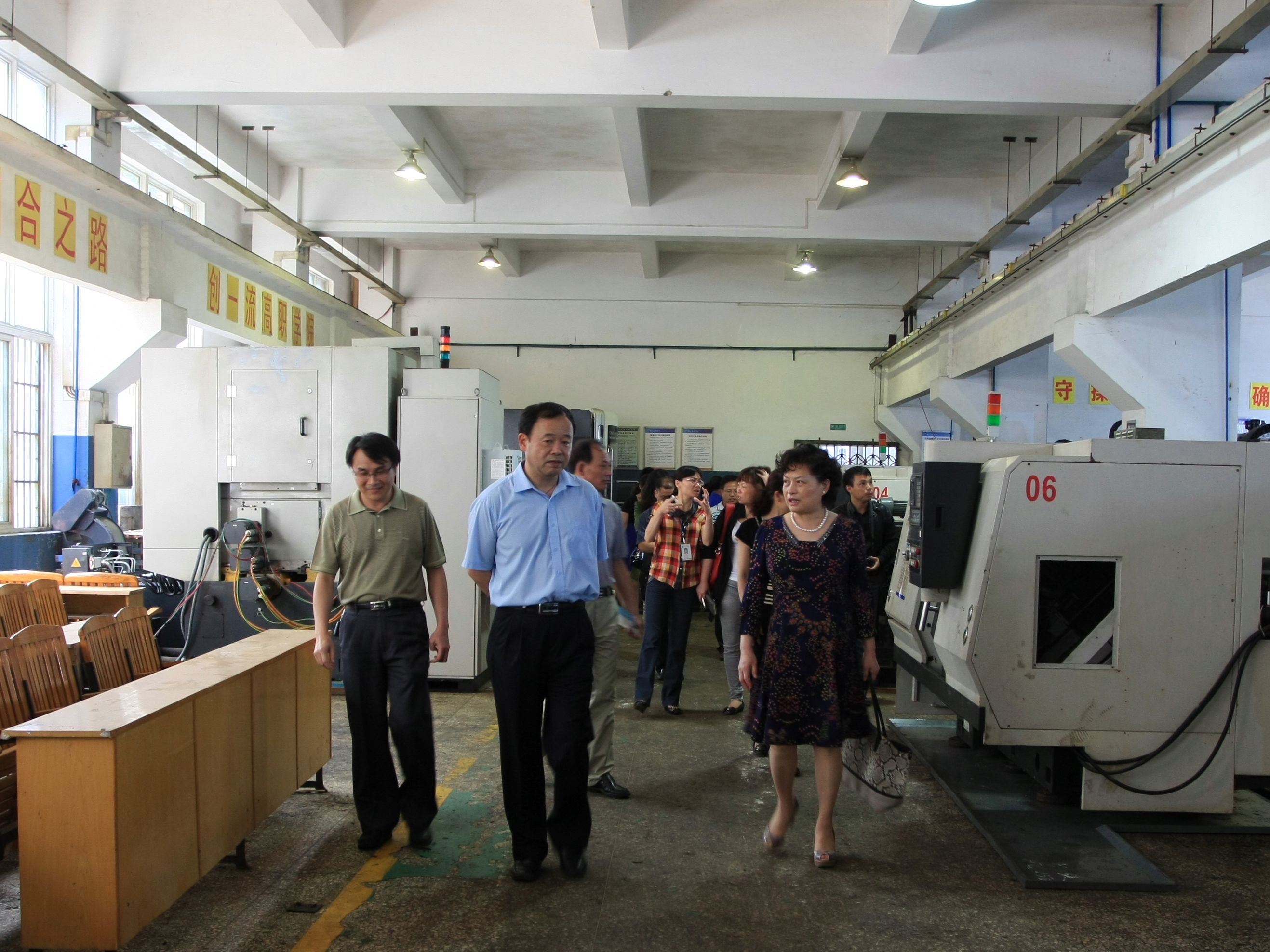 在我院领导的陪同下,来宾们参观了我院的先进制造模拟工厂、机电工程系实训基地??腿嗣嵌晕以旱慕萄Щ肪?、实训基地建设以及设备管理情况等都留下了深刻印象。