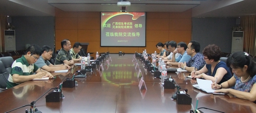 为认真落实教育规划纲要,提高全区成人高等教育招生考试服务广西新发展的水平,2013年7月2日,广西招生考试院叶仕业副院长、成招处邓金生处长、陈涤副处长一行4人来我院就高职高专院校实行成人高等教育单独招生的可行性进行调研。我院副院长林若森、继续教育中心主任黎刚、卢荷副主任及柳州市城市职业学院、广西生态工程职业技术学院、柳州师专等兄弟院校成教院主要领导出席了调研会议。