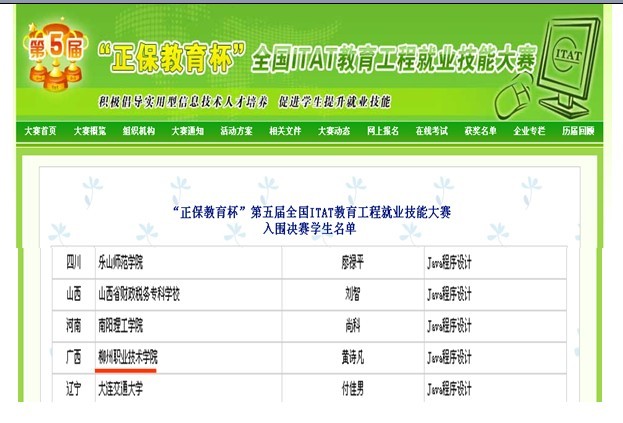 附:正保教育杯”第五届全国ITAT教育工程就业技能大赛入围决赛学生名单公布网址: