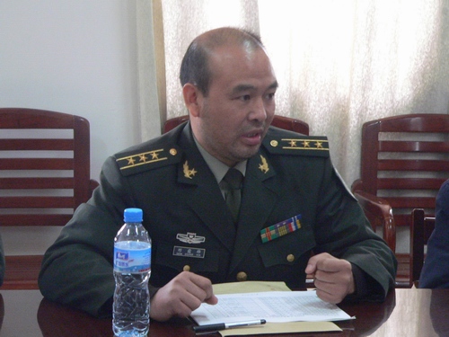 2009年12月4日,军队领导与新兵座谈会在我院办公楼八楼会议室举行。鱼峰区人民武装部部长邓霜桦、鱼峰区人民武装部政委向敏辉、鱼峰区人民武装部副部长徐红早、鱼峰区人民武装部政工科科长雷恣伟、我院院长助理李彰汉、保卫处处长莫帮雄以及接兵干部等领导出席座谈会。
