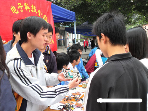 为提高学生综合素质,加强学生对专业知识的了解以及创新动手能力,展现学生积极向上的健康风貌,进一步营造良好的学习气氛,电子电气工程系电子科技小组于2009年12月27日在校园里举行了电子作品展。