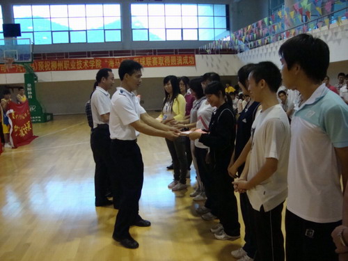2010年5月9日下午16点,我院2010年春季学期学生羽毛球联赛、篮球联赛于社湾校区体育馆圆满闭幕。公共基础部李革、黄宗能和罗雨潇三位指导老师以及赞助商柳州华明海马汽车销售公司代表作为嘉宾出席了闭幕式。
