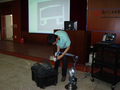在培训中,由桂林新百利制造工程有限公司的专业工程师担当培训讲师,以汽车车身逆向开发为实例,概述了数字化产品开发的方法以及逆向工程技术的特点,让培训学员对此项技术有了感性的认识。接着由专业工程师现场演示了使用三坐标测量仪进行汽车零部件数据采集的操作方法,并对采集到的数据在进行处理、逆向设计,最终得到CAD数字模型。在现场的逆向设计过程中,培训讲师一边操作一边深入浅出讲授了汽车零部件实体测量方法,如何使用软件对点云进行处理,如何检查点云数据是否变形或缺损,如何根据产品形状去划分面,如何进行曲面构建,以及建模完成后的检测等专业知识。学员们表示从此次培训中受益匪浅。