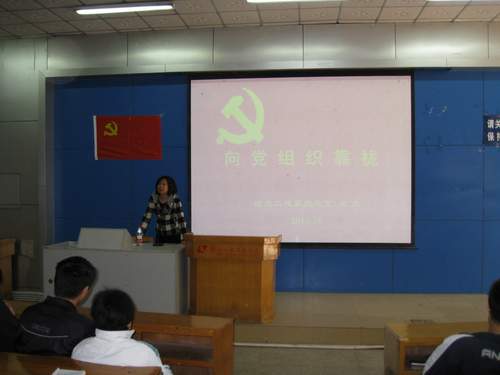 2010年10月29日下午,信息工程系党总支在思贤楼101教室举办了以“积极向党组织靠?!蔽魈獾男律氲称裘山逃沧沧尚畔⒐こ滔档匙苤Ц笔榧峭趸壑鹘?。信息工程系学生党支部全体党员以及2010级全体新生聆听了讲座。