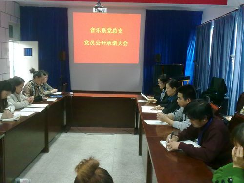 2010年10月20日下午,音乐系党总支召开创先争优党员公开承诺大会。音乐系党总支副书记吴星,委员、各党支部书记、全体教师党员、学生党员以及学生入党积极分子共30余人参加了大会。会议由系党总支委员赖沙颖主持。
