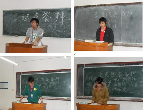 会上,各位学生党员从学习、工作、生活等方面剖析了自己,将自己一年来的情况向同学们做了汇报和说明,同时,也认真地进行了自我批评,指出了自己的缺点和不足,并下决心克服并改进,希望接受群众对他们的监督。2009级的入党积极分子也根据他们的述职报告提出了问题及建议,各位学生党员也表示诚恳接受和感谢。