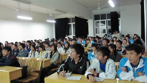 会场座无虚席,同学们认真聆听